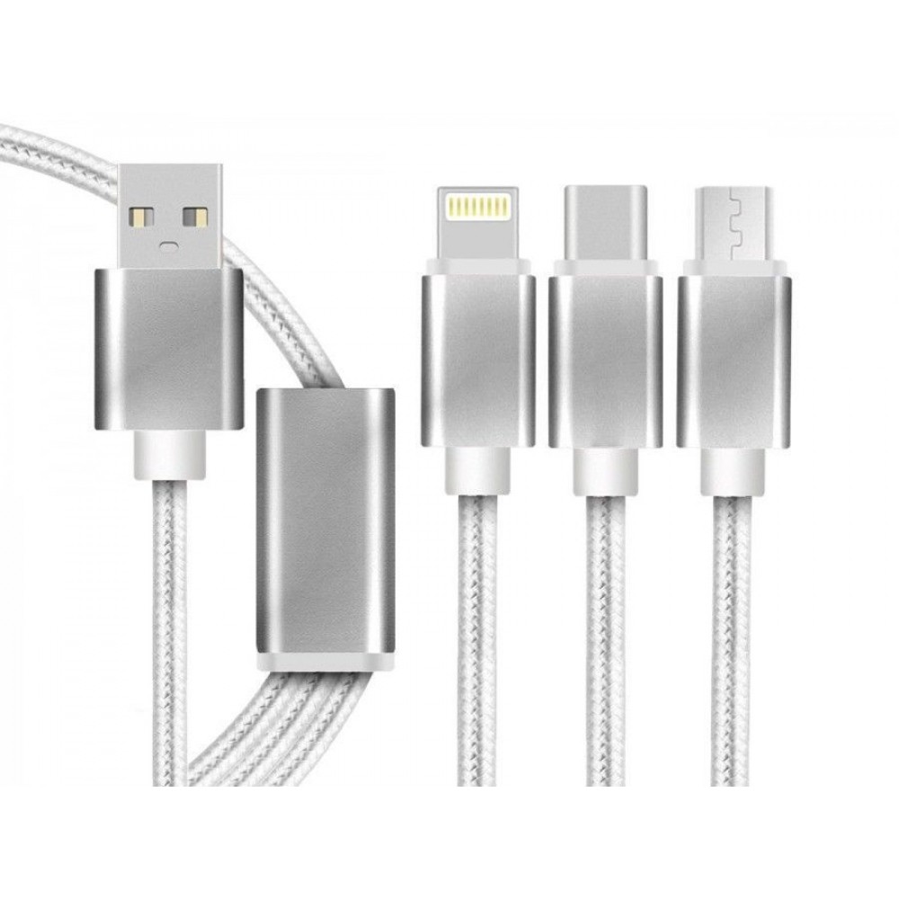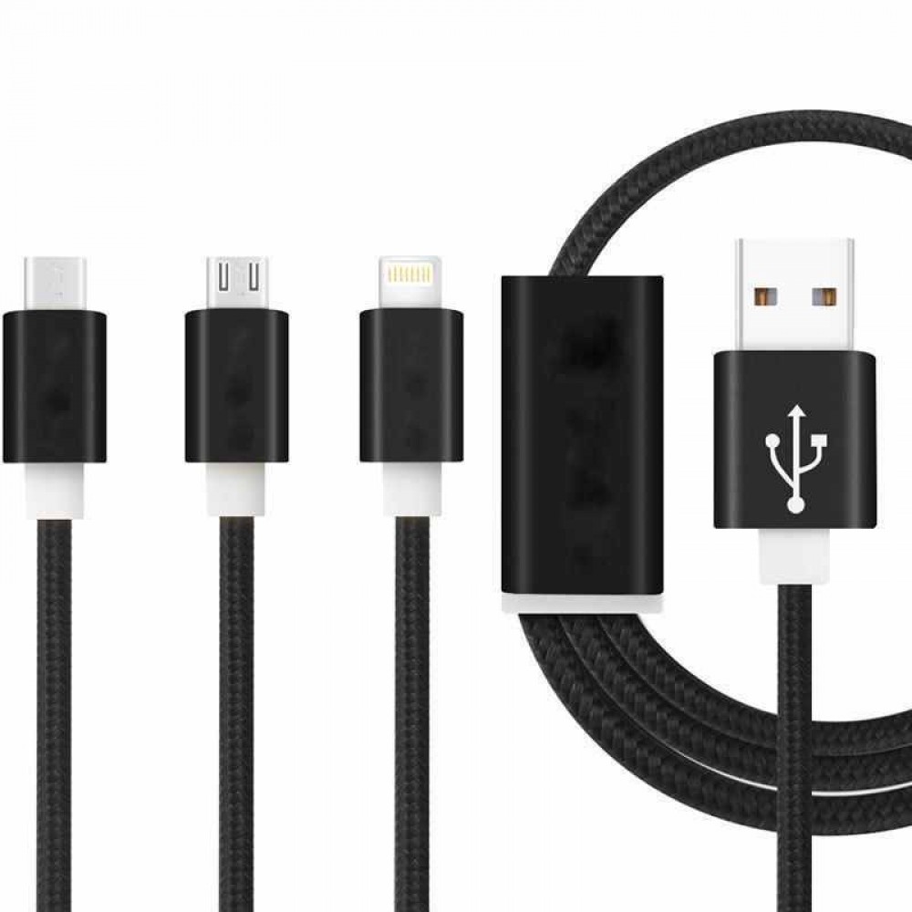Braided 1.5M For IPHONE MICRO & TYPE C *3 IN 1*