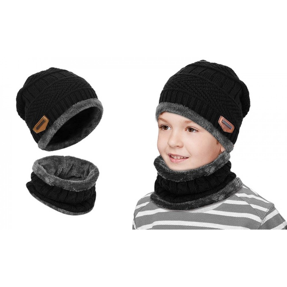 Kids Winter Beanie Hat and Circle Scarf Set Thick Warm Ski Knitted Fleece Lined