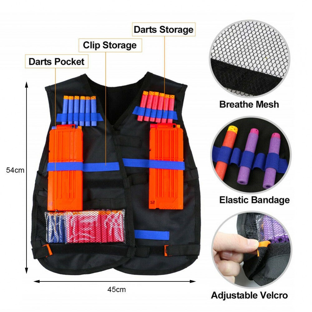 1. This tactical vest kit fit for nerf guns, lets you carry along lots of extra ammo, maximize your firepower.