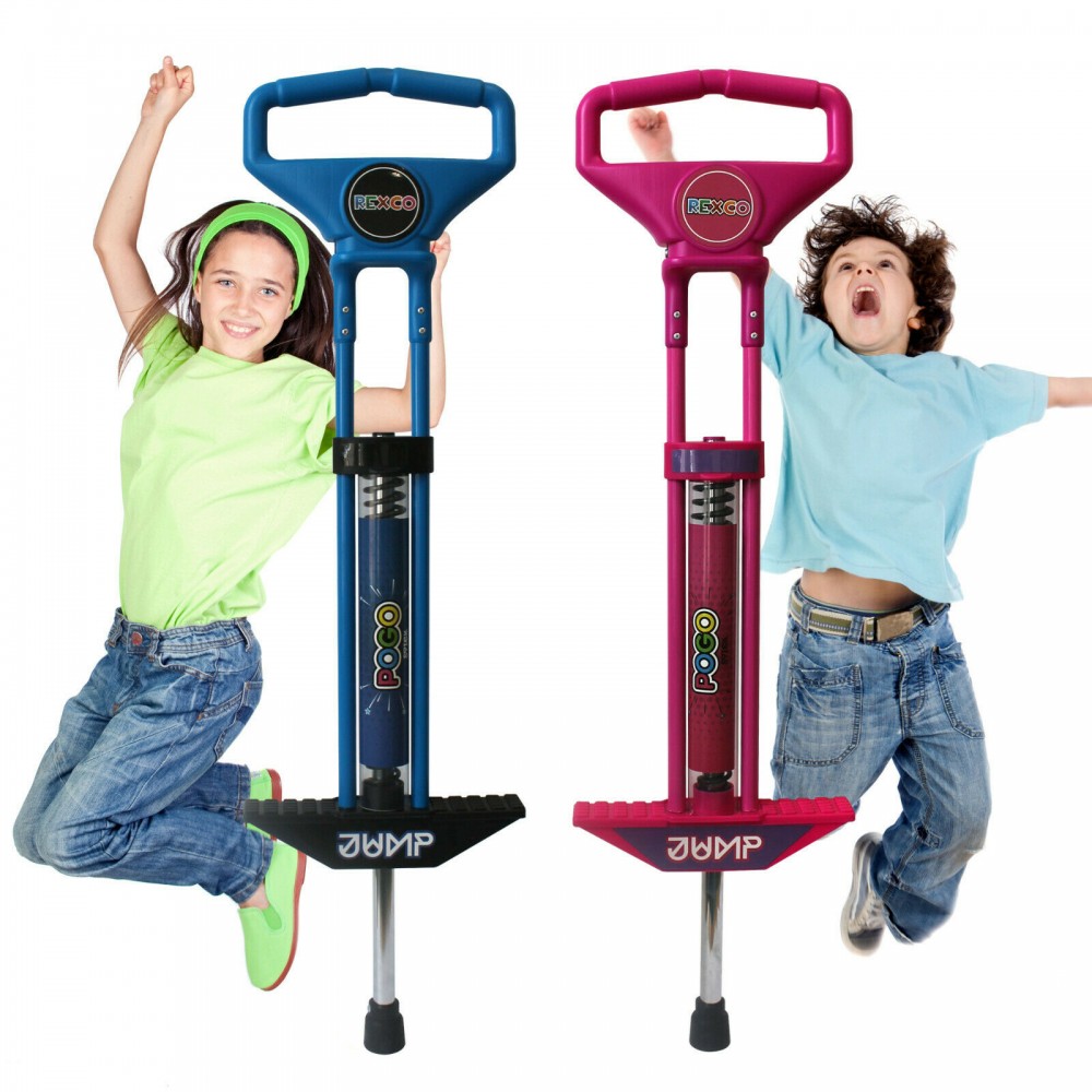 Rexco Kids Pogo Stick Jackhammer Stick Fun Spring Powered Jumping Bounce Jump Toy Indoor Outdoor Garden Camping Picnic Ride On Game
