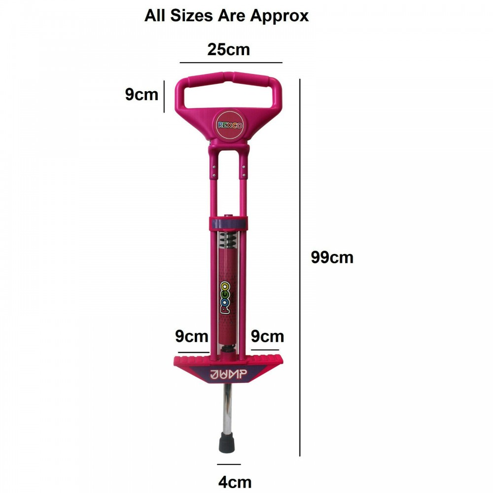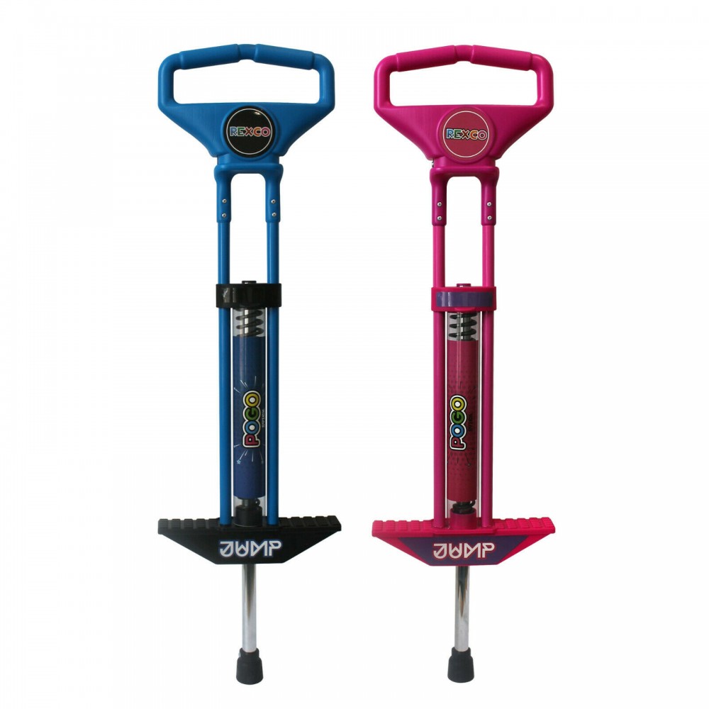 The cool Pink Or Blue Pogo Stick by Rexco has a durable construction and incorporates a high-tech design. This robust pogo stick benefits from a super bounce, heavy-duty spring and non-slip foot grips and provides hours of safe bouncing fun for the kids. Children simply grab the handlebars, put their feet on the platform and get bouncing! The strong and robust coil spring centre is guaranteed to tire them out and keep them bouncing for hours!