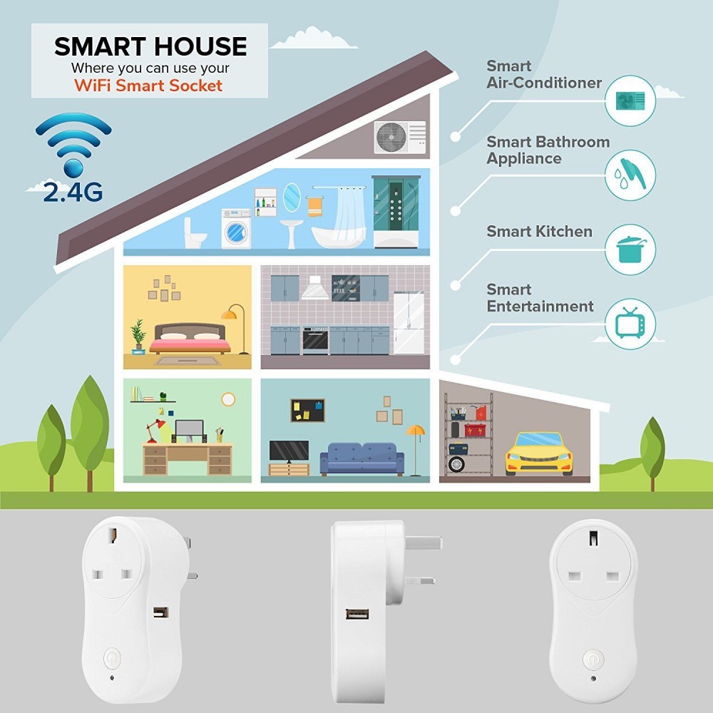 WiFi Wireless Smart Timer UK Plug Socket Alexa App Remote